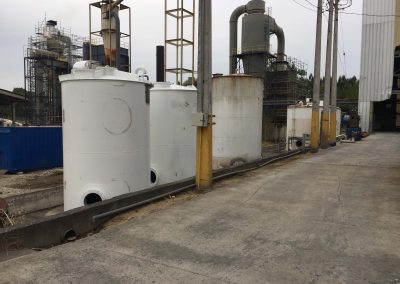 Este proyecto tuvo una duración de 5 meses y consistió en la instalación de 2 estanques de 45 m3 y 2 estanques de 21 m3 para almacenamiento de resinas. Entre las principales labores realizadas se encuentran el diseño e instalación de bombas, conexionados y líneas de alimentación de producción, además de la construcción de un galpón de 230 m2, todo fabricado previamente en nuestra maestranza. Hemos realizado trabajos similares para otros clientes en la industria forestal.